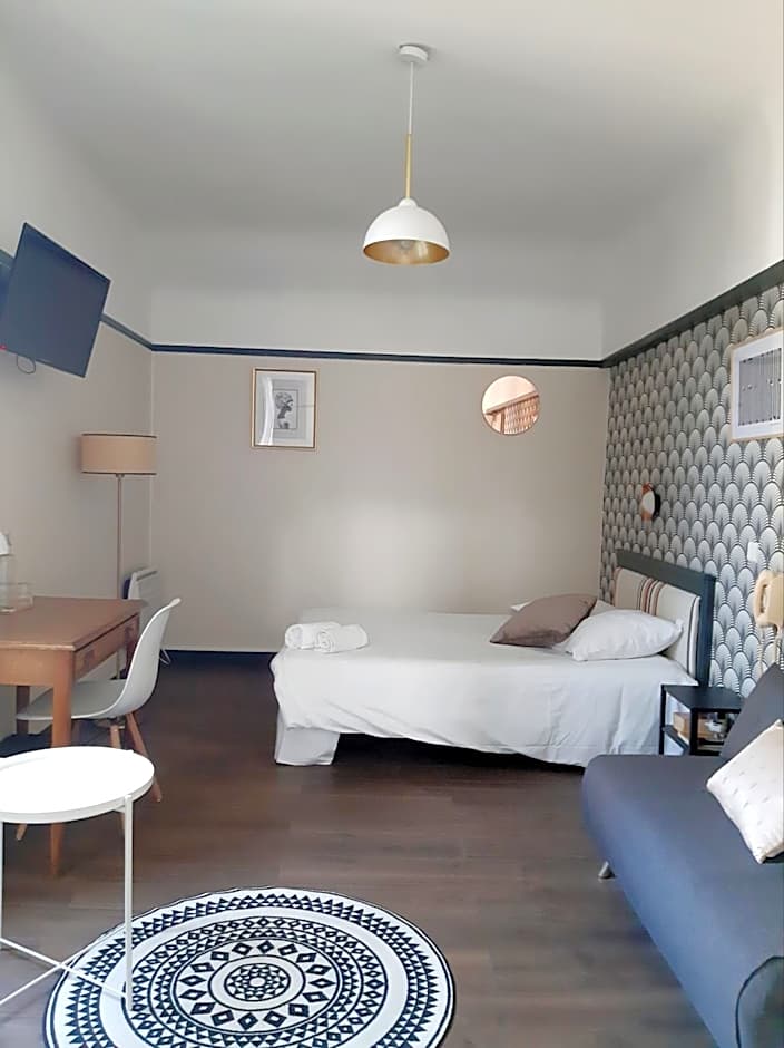 Beautiful small hotel hidden in a nice garden. The room was enough big for two persons. Air conditioned. The hotel is in quarter St. Charles - small shops, restaurants, bars, boulangeries, supermarkets very near. Also the laundrymat was 5 minutes. The Grande Plage 7 minutes of walking. The bus stop from trainstation is very close to the hotel. It is possible to buy tasty breakfast. And the staff was really very nice, helpful in every moment.