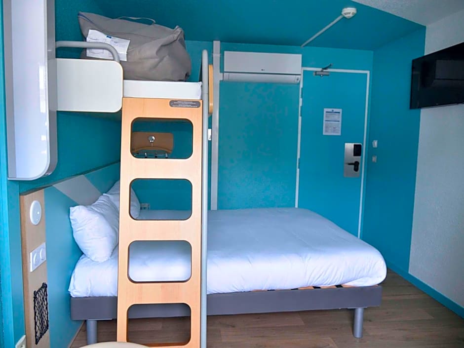 At the ibis budget Blois Centre hotel, one type of room available is the Triple Room with One Double and One Bunk Bed. This room has a size of 129 sqft and does not allow smoking. It can accommodate up to 3 adults and 2 children, with 1 double bed and 1 bunk bed.