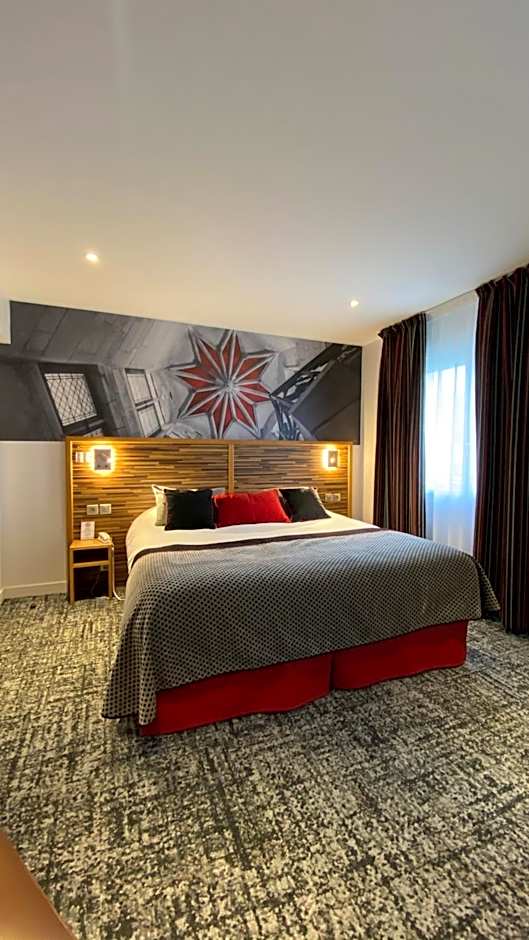 The hotel is in a great location, about 10 minutes walk to the centre of Bourges (although this does include steps and cobbled streets (for those with accessibility issues). Parking is very easy on a quiet street outside the hotel. We stayed in a Comfort Triple Room (we were two adults and one child) and were very very impressed with the size of the room and the space we had despite all our luggage. Beds were very comfortable. Will definitely return!