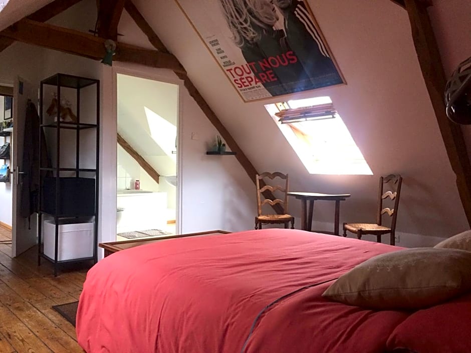 Hospitable and accomodating host. Lovely modernised house with nice garden in a remote village with very few amenities about a mile from the canal. Note there is no tv. Portable ac unit. Attractive good sized attic room via 2flights of stairs. Tea and coffee on shared landing. Good bike (velo) storage. French bfast of jams, fruit, yoghurt, pan and pastry.