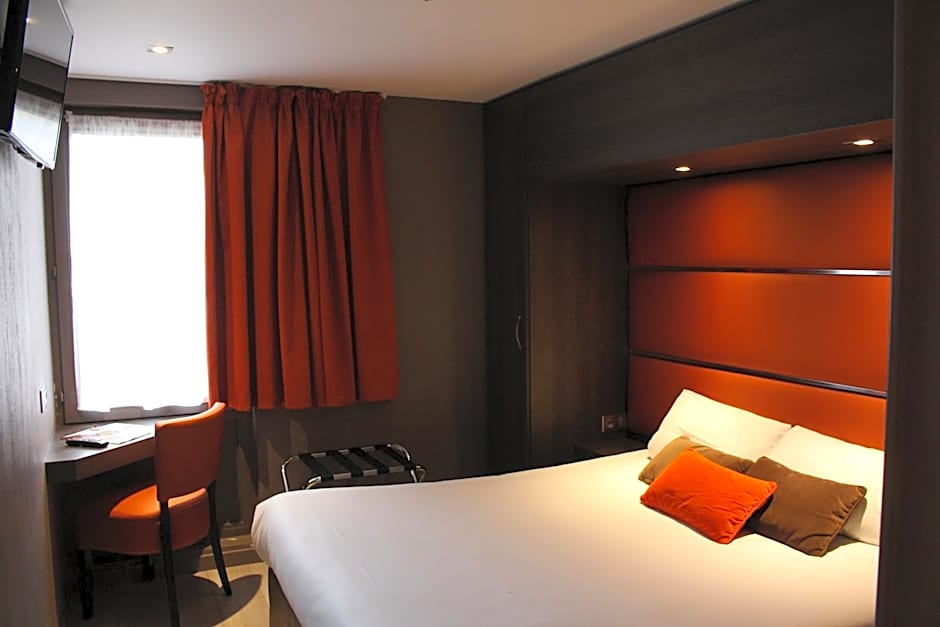 Location was excellent for our travel needs and easy to access. Good amount of available parking on site. The staff were all really very friendly and helpful and made it very clear they could help us in English as our French is not great. The bed was really very comfortable and everything in the room was clean and well presented. Breakfast was well presented with good quality options especially the apple juice.