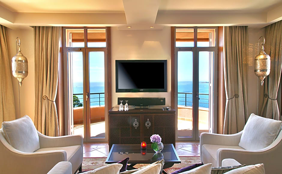 This suite is decorated in a fine contemporary Mediterranean/Oriental design, with a lounge area and a furnished balcony overlooking the Mediterranean Sea. These Suites feature a comfortable bathroom with a double walk-in shower, hair drier, bathrobes and slippers.