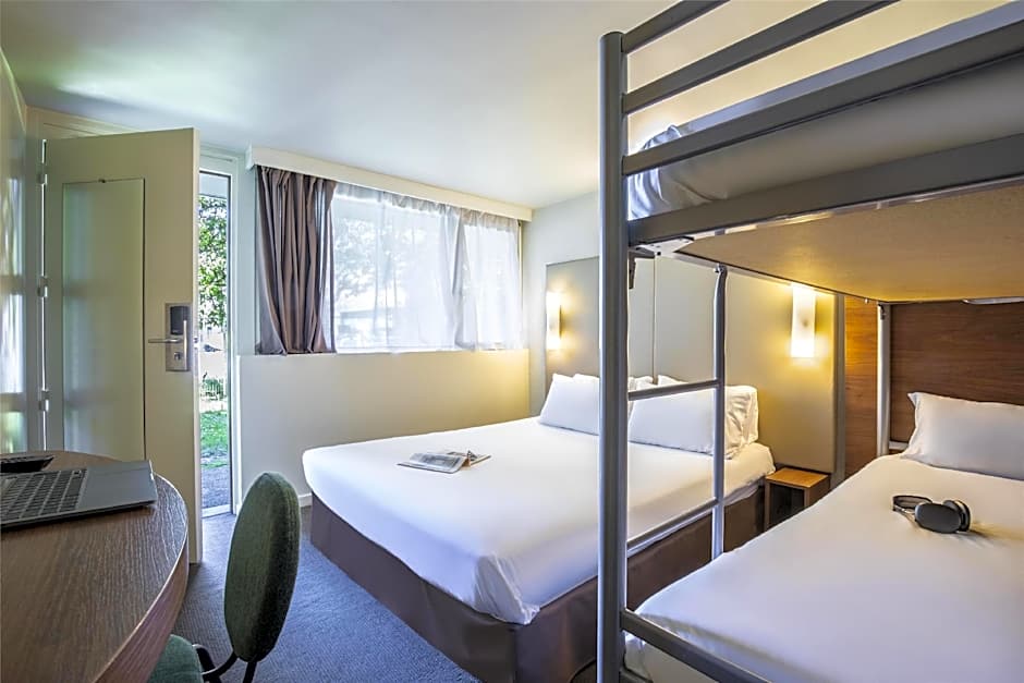Choose from a variety of comfortable and well-appointed room types at Campanile Nîmes Sud - Caissargues. The Twin Room is perfect for friends or colleagues traveling together, with two twin beds that can accommodate up to two adults and one child. The Quadruple Room is ideal for families, featuring two twin beds and a queen-sized bed, accommodating up to two adults and two children. If you're a couple or a small family, the Double Room offers a cozy and intimate space with a queen-sized bed that can accommodate up to two adults and one child. No matter which room you choose, you can expect a peaceful and relaxing environment during your stay.