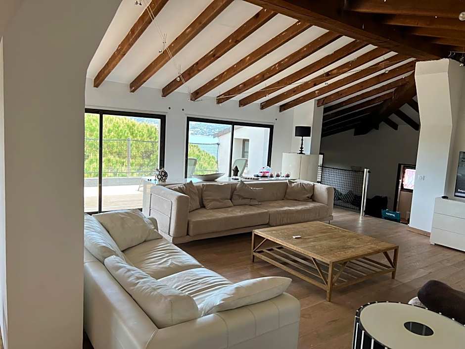 Perched along Baie De La Liscia in Calcatoggio, this beachfront haven blends Corsican scenery with sun-soaked relaxation. Direct beach access opens to a sun deck, while an outdoor pool with heated infinity edges and a dedicated kids’ pool keeps all ages refreshed. Terrace, balcony, and garden views frame every moment, and a private entrance adds a touch of island arrival ease.