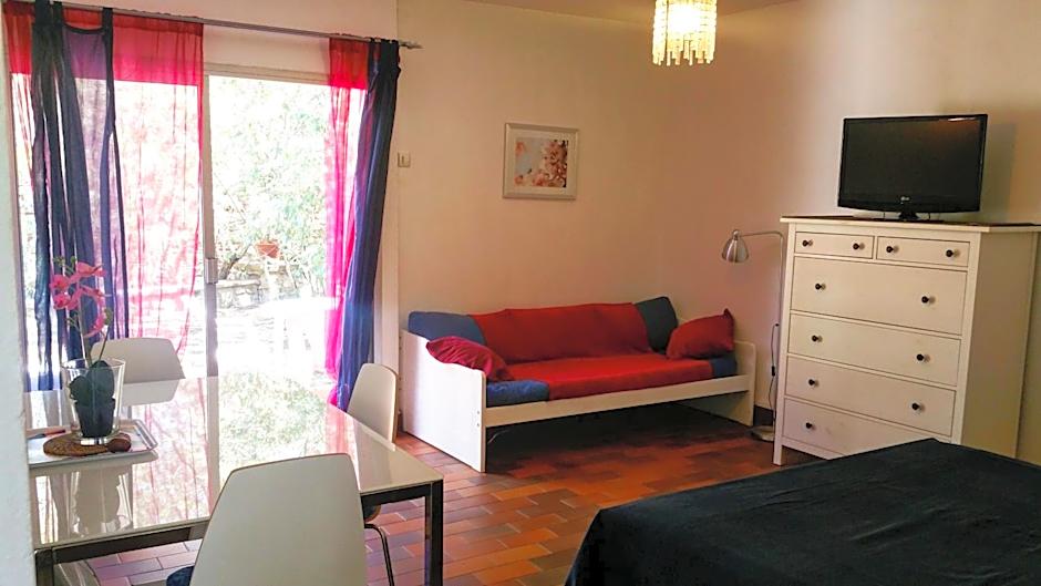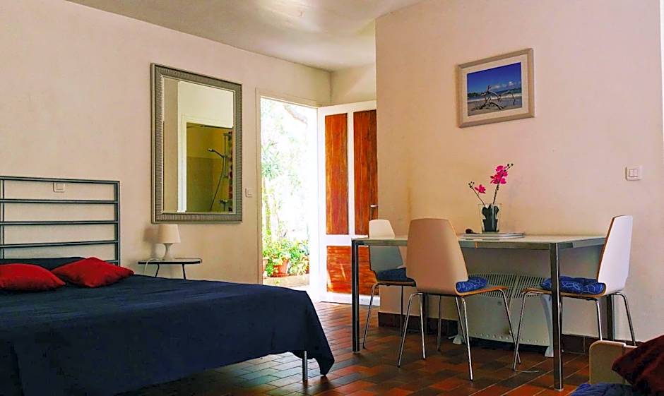 Guests will find a stovetop, a refrigerator, kitchenware and a microwave in the fully equipped kitchenette. The studio also has a barbecue. The studio offers air conditioning, a private entrance, a terrace with garden views as well as a private bathroom featuring a shower. The unit offers 2 beds.