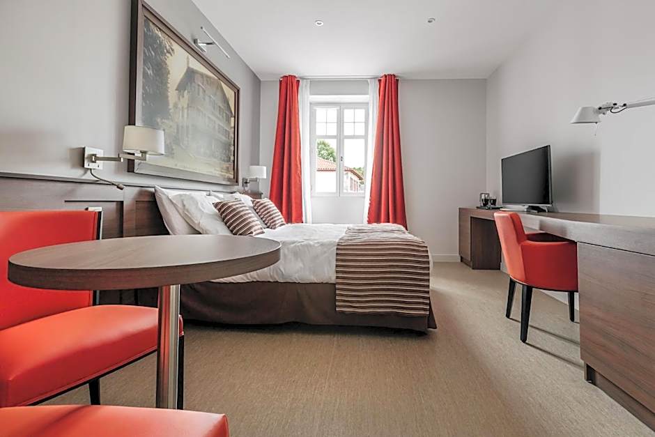 Lovely stay in Cambo-les-Bains, out of the hustle and bustle of the beautiful Basque coast. The hotel was clean and quiet; it is above a "cafe" but it is not open in the evening. Our room had a nice full terrace to enjoy a bit of the local ambience and morning sunshine. Lots of nice restaurants in the town, but we arrived without a reservation on Valentine's Day (silly!) and happily made a picnic from the local cheese shop, Basque specialty store and small bio store. Very peaceful. We have lived in the area and I would highly recommend it for a touristic stay in the region, good proximity to the villages, but a bit more serene than staying on the coast. And I really love the coast!
