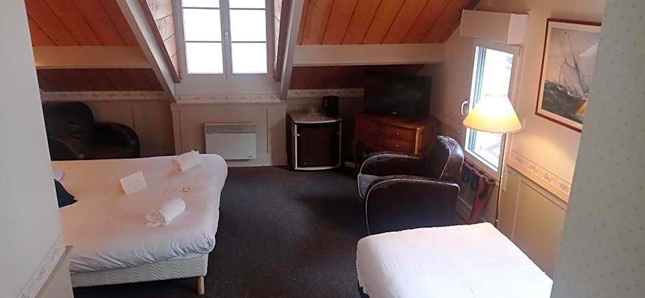 Choose from a variety of room types to suit your needs and preferences. From the Prestige Double Room with Sea View, offering stunning ocean views, to the spacious Duplex Room that can accommodate up to 5 adults and 4 children, there is a room for every type of traveler. Each room is smoke-free, ensuring a fresh and pleasant atmosphere. With comfortable beds and private bathrooms, you'll enjoy a peaceful night's sleep and wake up refreshed and ready to explore the beautiful city of Cancale.