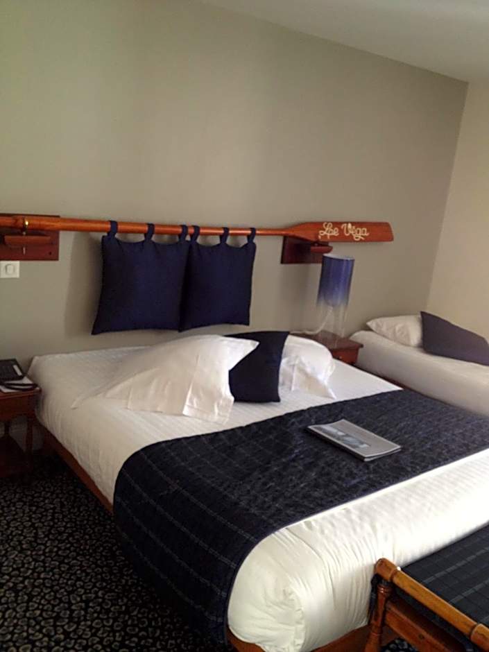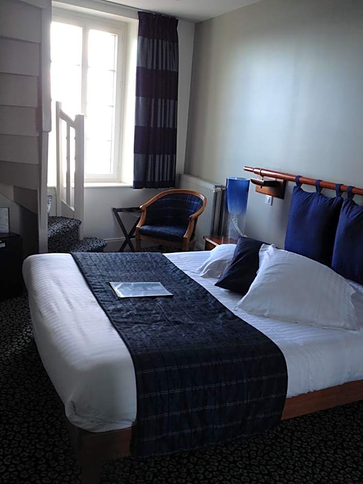 the guesthouse/restaurant is a cosy building right on the seafront of Cancale and it embodies its charme: restaurant colese at 10-ish so no fuss from patrons after that time we were lucky enough to be accomodated in the "Libertè" room, a duplex unit very comfortbale for a family of 4, with large shower, separate toilet, a tiny living room a bedroom with very large bed and fantastic upper level with two single beds. Off street parking available and very quiet all night even though we stayed there in full summer season definetly exceeded our expectations