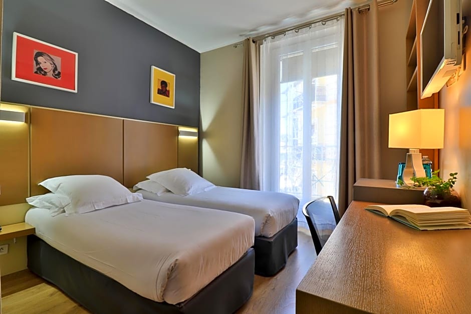 The hotel is in the center of Cannes. Next to the train- and bus stations. The room was very clean and was cleaned every day. The bed was comfortable and we had a nice view from the balcony. The receptionists were really kind and helpful. We were 100% satisfied.