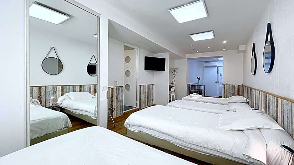 Discover a range of accommodation options at Hotel Le Florian, from cozy single rooms to spacious apartments accommodating up to four adults and three children. Whether you prefer a room with a queen-size bed, twin beds, or a combination of both, the hotel offers versatile choices to suit your needs. Relax in comfort and style after a day of exploring Cannes in these well-appointed rooms designed for your ultimate relaxation.