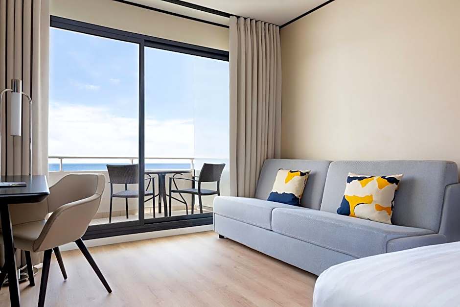 Featuring a private balcony with views of the Mediterranean Sea, this air-conditioned room offers queen-sized or twin beds, a flat-screen LCD TV with satellite channels, high-speed Internet and a coffee maker and tea service. The room is located on the 1st or 2nd floor.