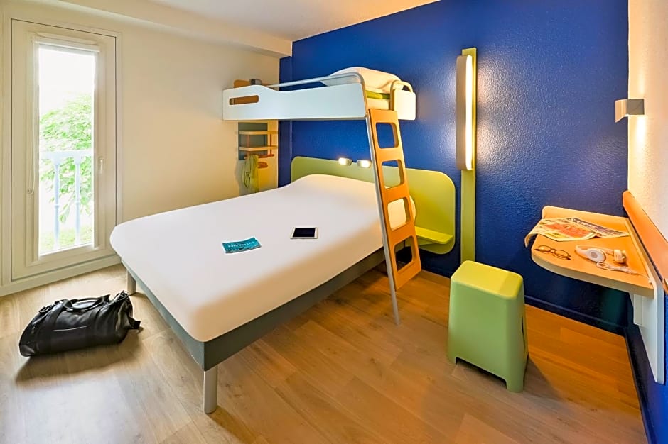 The hotel, Ibis budget Chambéry Centre Ville, offers a variety of room types. These include Standard Double Rooms with Bunk Beds, Double Rooms, and Superior Triple Rooms. All rooms are non-smoking and have a room size of 140 sqft. The Standard Double Room with Bunk Bed accommodates up to 3 adults and 2 children, while the Double Room and Superior Triple Room accommodate up to 2 adults and 3 adults/2 children, respectively. Bed sizes range from double beds to twin beds and bunk beds.