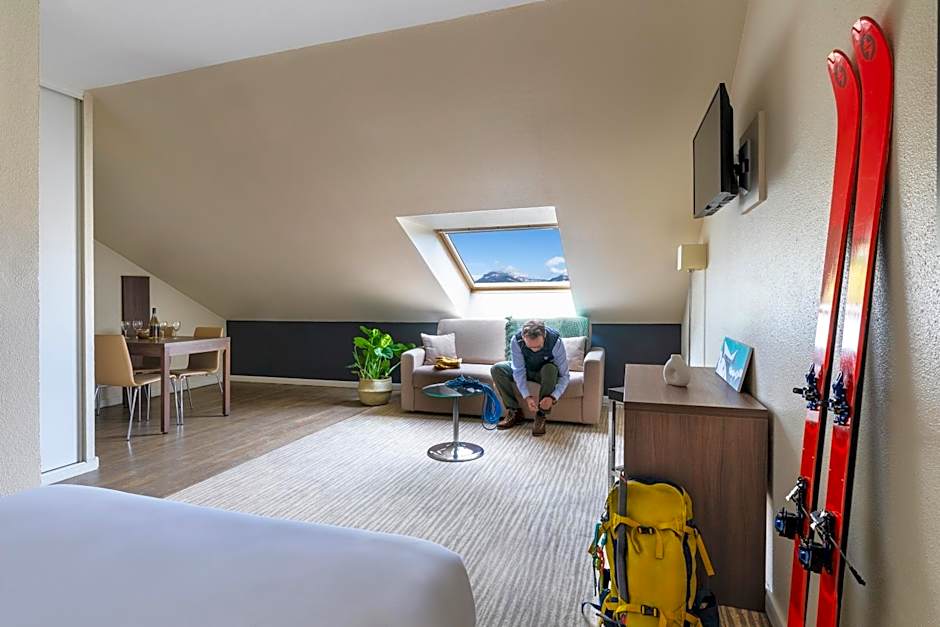For families or larger groups, the Family Room is an excellent choice. Spanning a spacious 377 square feet, this room caters to the needs of up to four adults and three children. It features a sofa bed and a queen-size bed, providing ample space for everyone to relax and unwind after a day of exploring the charming city of Chambéry.