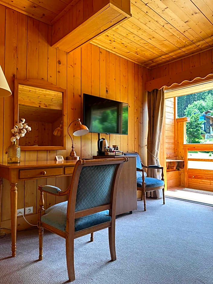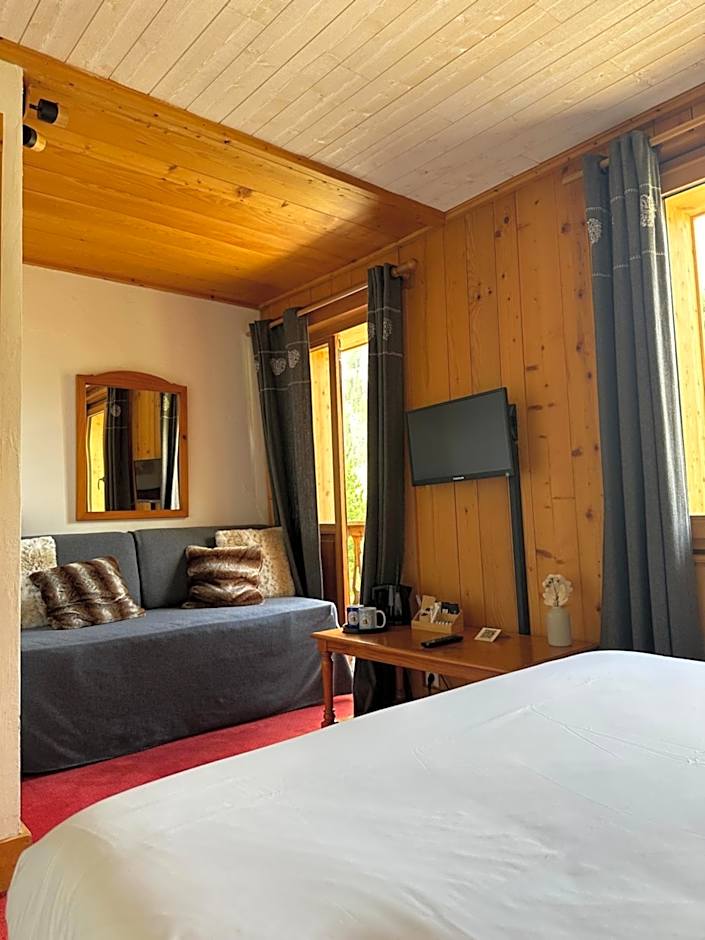 This room features a view over the Argentière Valley. It has a either a double or twin beds and a bathroom with a bath tub, hairdryer, toilet, Algotherm toiletries, slippers and bathrobes.