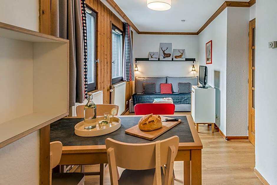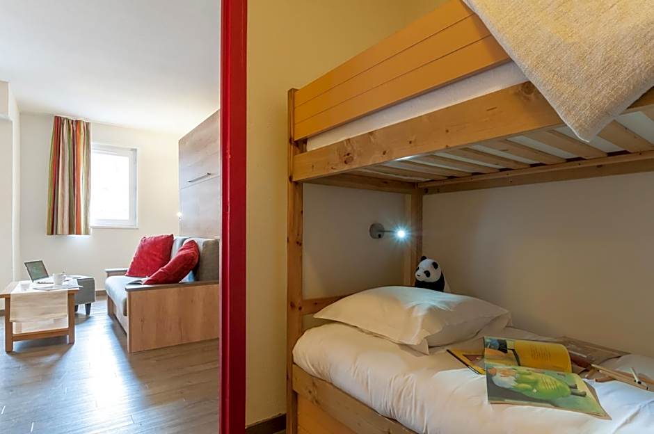 This apartment features a living area with one single sofa bed with one pull-out bed.There is one bedroom with a double bed. It has one independent bathroom with a shower. The fully equipped kitchenette opens on the living area. You are kindly requested to clean the kitchen area before departure. These accommodations are located in the Aiglons building (south or east facing). Some of them have a balcony and/or are duplexes (extra charge and on reservation. Contact the reception).