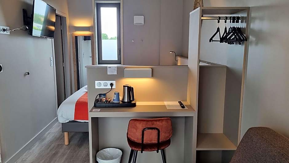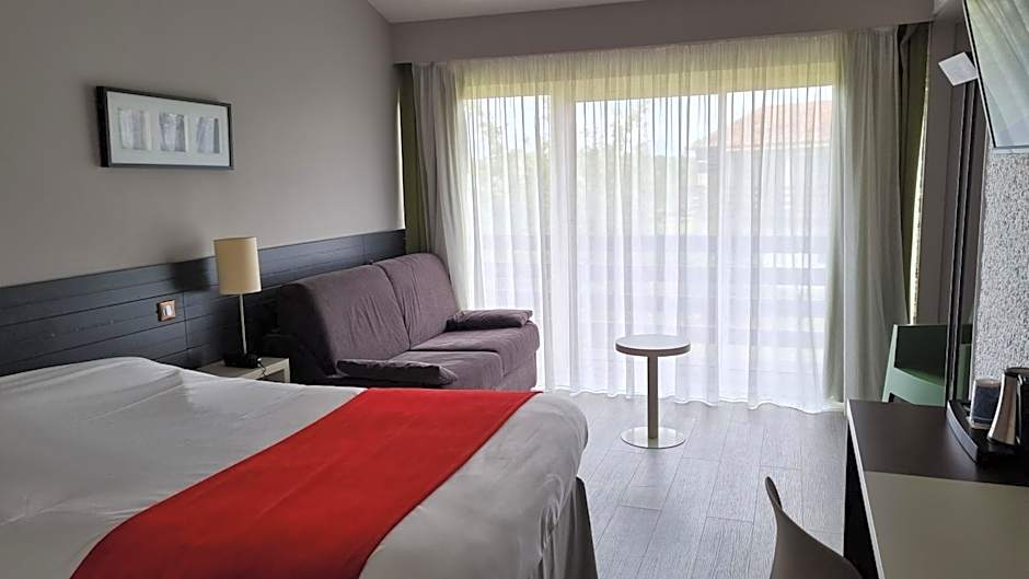 The Kyriad Angoulême Nord Champniers- Hôtel & Résidence offers a variety of room types to accommodate different preferences and group sizes. Whether you're traveling solo, as a couple, with family, or with friends, there's a room for you. Choose from options such as the Double Room, Quadruple Room with 1 Double Bed and 1 Sofa Bed, Triple Room, Superior Quadruple Room with a Sofa Bed and a Kitchenette, Twin Room, and Quadruple Room. Each room is thoughtfully designed, with amenities like air conditioning and private entrances, ensuring a comfortable and enjoyable stay for every guest.