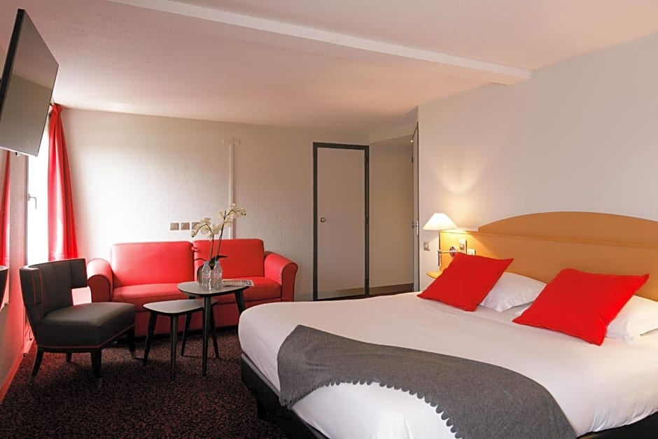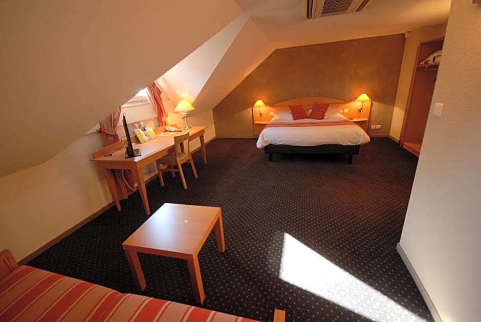 Choose from a variety of stylish and comfortable rooms, thoughtfully designed to cater to your needs. The Family Room provides ample space for your entire family, with a queen-size bed and a sofa bed. If you're looking for a romantic getaway, the Privilege Double Room offers a spacious retreat complete with a queen-size bed. For those traveling with a companion, the Superior Double or Twin Room provides flexibility with both a queen-size and twin beds. And if you're on a budget, the Standard Double or Twin Room offers a cozy space that ensures a restful night's sleep. So whether you're traveling with family, a loved one, or a friend, Logis L'Orée de Chartres - Barjouville has the perfect room for you.