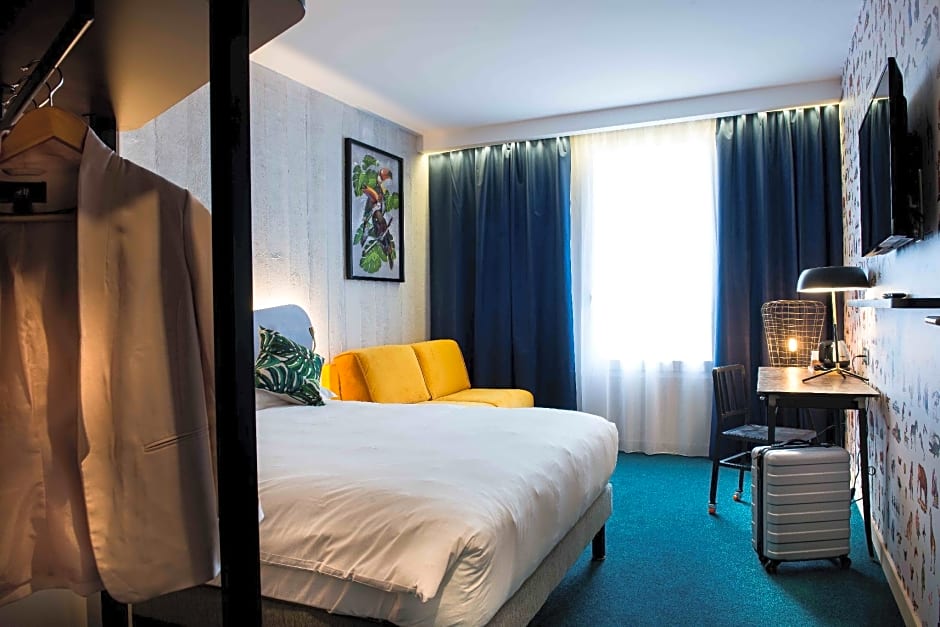 At KOPSTER Hotel Lyon Groupama Stadium, guests can choose between a Family Room accommodating 2 adults and 2 children with a double bed and a sofa bed, or a Double or Twin Room accommodating 2 adults and 1 child with either a double bed or two twin beds. Both room types are non-smoking and vary in size from 205 to 237 sqft.
