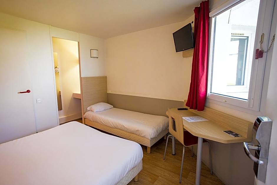 The Première Classe Cherbourg - Tourlaville hotel offers three types of rooms: Double Rooms, Standard Family Rooms, and Twin Rooms. All rooms are non-smoking and have a size of 151 sqft. The Double Rooms and Twin Rooms can accommodate 2 adults and have either a double bed or two twin beds, respectively. The Standard Family Rooms can accommodate 3 adults and 2 children, with a combination of a twin bed and a double bed.