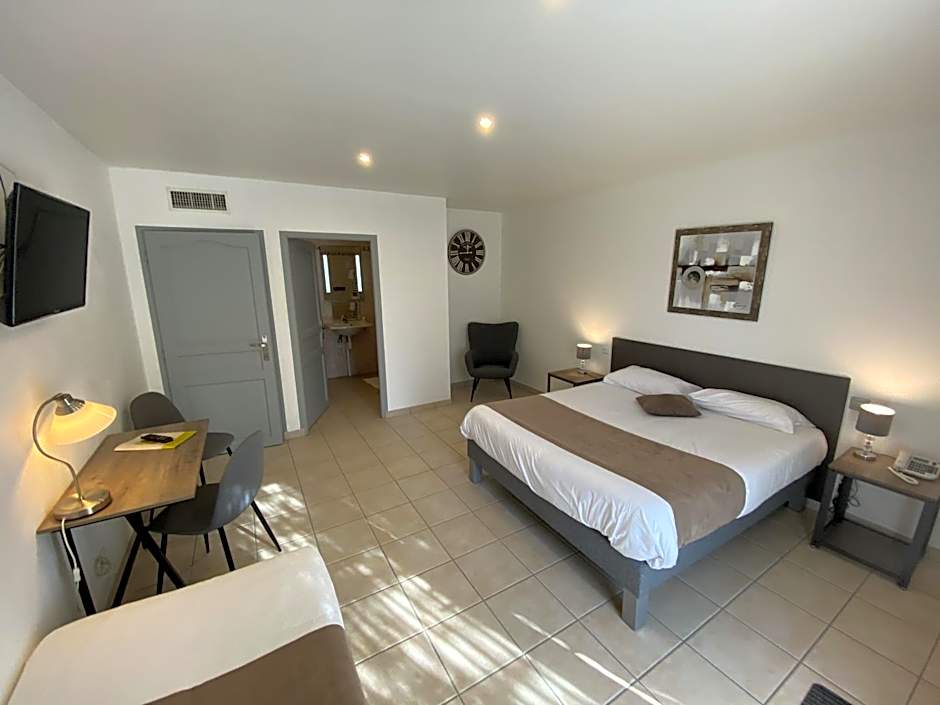 With access to the garden or to the flowery parking, this room features a wardrobe, and a bathroom with a shower, some with a bath. There is also a flat-screen TV with cable channels and some rooms are air-conditioned.