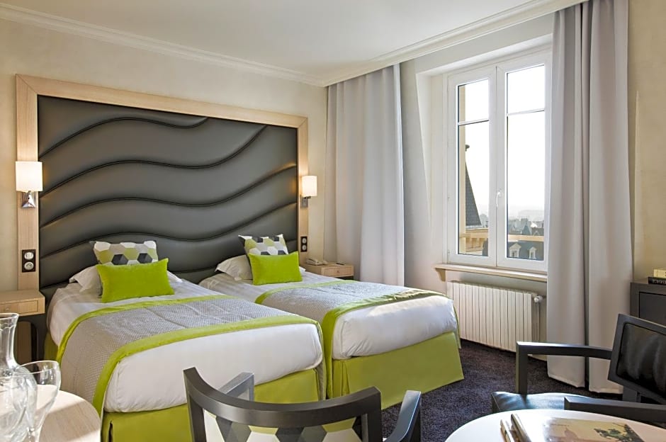Nestled just half a kilometer from the vibrant heart of Courtoisville, the Grand Hôtel Des Thermes promises a five-star retreat along the stunning French coast. Whether you're arriving for leisure or business, this beachfront oasis offers an unbeatable blend of luxury and comfort. With its elegant rooms equipped with soundproofing, modern amenities like free Wi-Fi, and a relaxing atmosphere, you'll find your perfect sanctuary right here.