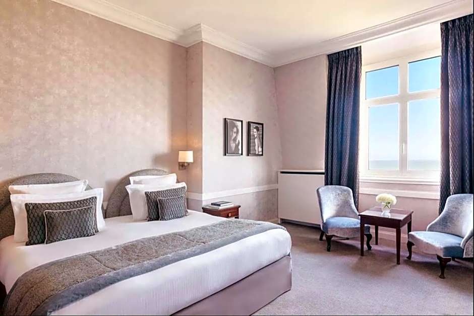 Hotel Barriere Le Royal Deauville offers a variety of rooms including Superior Double or Twin Rooms with Sea View, Deluxe Suites, and Prestige Suites, accommodating different occupancies with bed options such as Queen size and Twin beds. All rooms have a no-smoking policy and range in size from 323 sqft to 1292 sqft, with some offering sea views, balconies, or garden views. Suite options include the Junior Suite, Prestige Suite, and the Suite Amicalement Vôtre, providing luxurious stays for guests.
