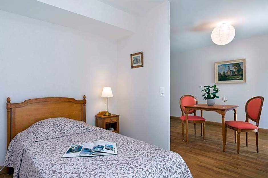 Large apartment with kitchen and balcony in assisted-living block. Calm, quiet area with gardens and off-street parking. No chance of late night noise. Decent-sized Intermarche round the corner, walkable distance to Dijon. On-site dining room we did not use - too many options in Dijon. Worth a weekend stay (but no more). The group has these units in the block to cater for families visiting relatives and let them out to the general public. Do not be put off, it's very professional.