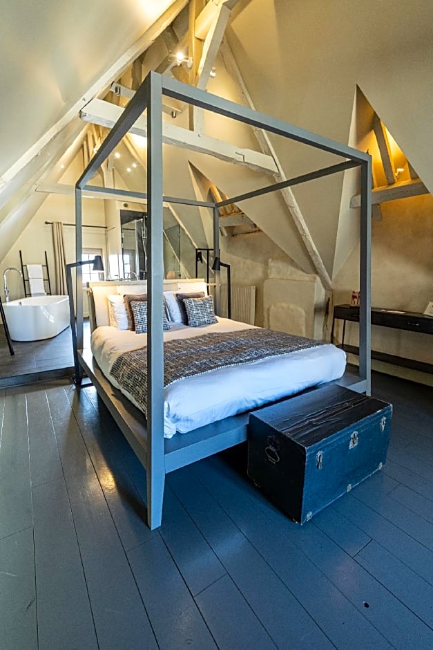Bright and airy rooms with exposed wooden beams and views of the garden or Place Saint Sauveur. This room cannot accept babycot or any other extra bed. Please note that this room is not accessible for people with reduced mobility.