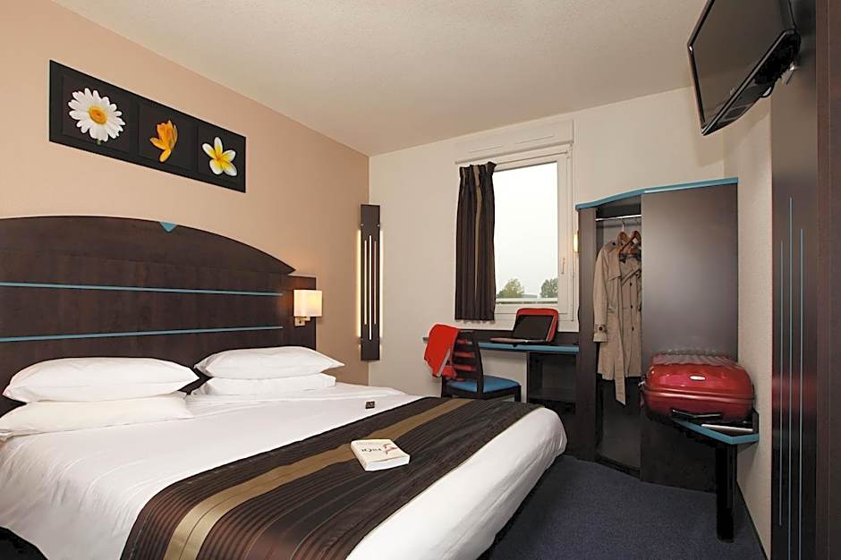 Very nice lady on reception! Very helpful and polite even we are not from France. Excellent value for money for such a clean new small hotel. Safe locked parking. Comfortable beds and pillows, pillows are choice of two, firm and soft. Excellent breakfast with nice crepes, bacon, eggs, frozen yogurt and much more. Definitely use it again!