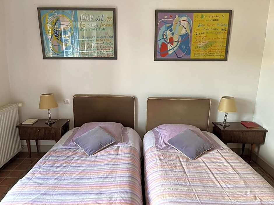 OMG OMG OMG. When can I move in? Welcome to Paradise. Last minute booking when we tried to find a place near Giverny, but got shut out. Three hour notice and the staff was warmly welcoming. When I booked this I thought, "there is no way this is real......". Voila! Bonjour mon ami! Fruit trees, bird song, pool, tennis, gorgeous grounds to walk around. I mean, in my fantasy life, I buy this place and move in. If you need to lower your stress level to zero, you found your spot. Great value. We got two large rooms in a guest house, one with a King bed and an adjoining room with three twins.