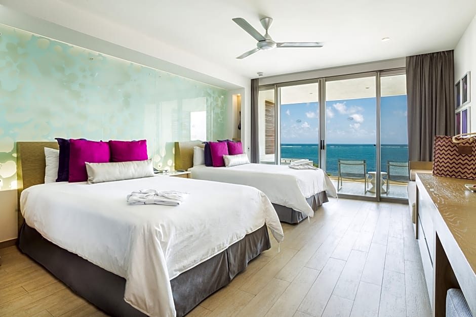 XHALE CLUB OCEAN FRONT DOUBLE is 538 square feet and includes either 2 queen-size beds 150-154 width or a double bed 131-150 width plus balcony, desk, cable tv, hairdryer, tea and coffee making facilities , ironing set, safe, bathrobes, and slippers.