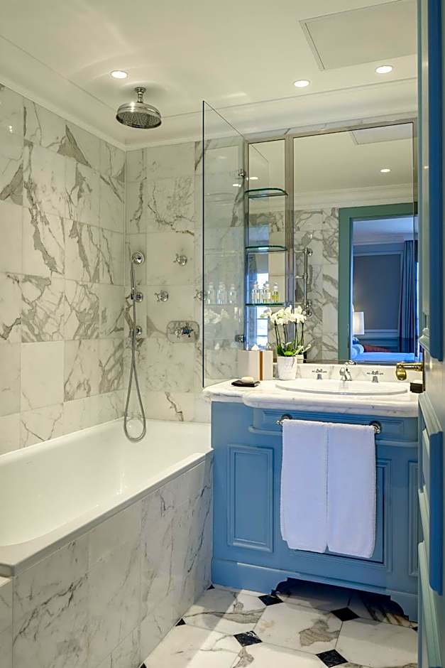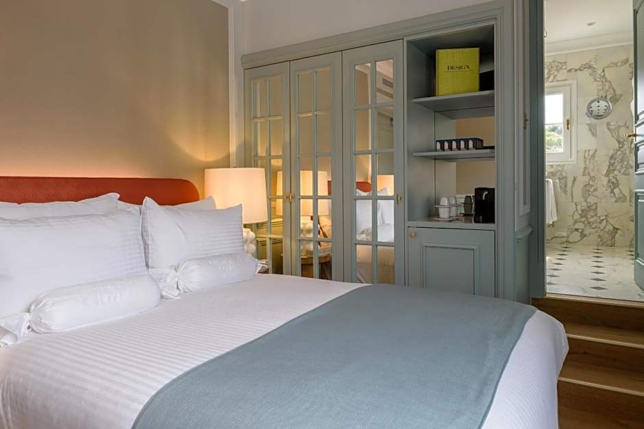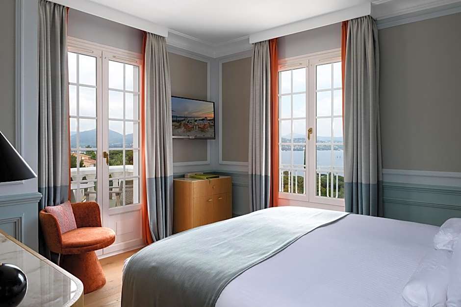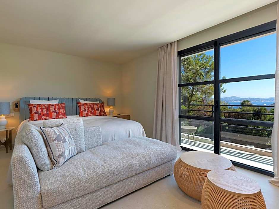 Opening up to a private terrace with views of the bay of Saint-Tropez, this elegantly decorated room includes a marble bathroom.