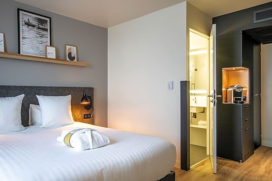 Great hotel, good sized rooms, clean and comfortable. Friendly staff and check in process was super fast and efficient. Location worked for us as we were going to Stadt de France, it's not next door to a tram station but about 10 minutes but we didnt mind the walk. Parking included in the price.