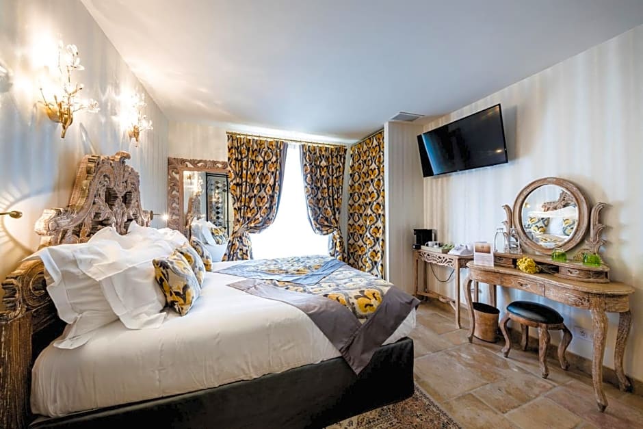The hotel has a restaurant called La Cuisine d'Aglaé offering romantic ambiance and French cuisine, indicating the presence of on-site dining options.