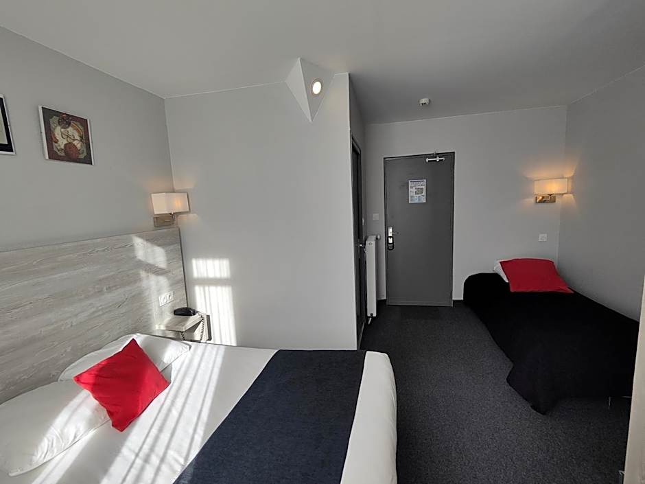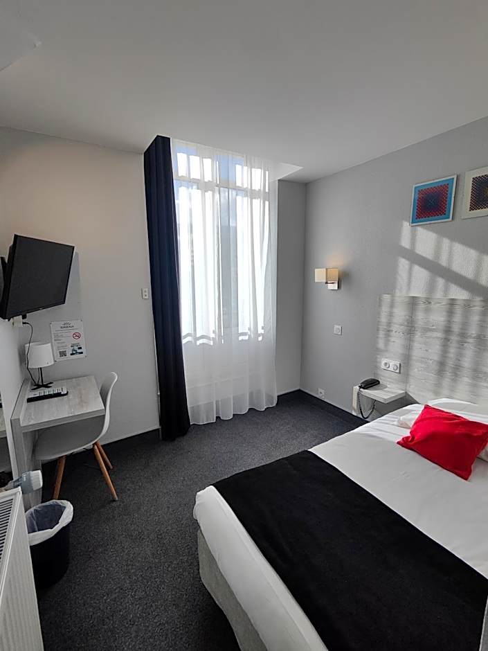 The Brit Hotel Suisse et Bordeaux - Centre Gare offers a variety of room types including single rooms, double rooms, and triple rooms. The rooms range in size from 118 sqft to 205 sqft. Smoking is not allowed in any of the rooms. The occupancy ranges from 1 adult in the single rooms to 3 adults in the triple rooms, with some rooms also accommodating children. The bed sizes vary, with options including twin beds, double beds, and queen-size beds. Some rooms also offer views or balconies.