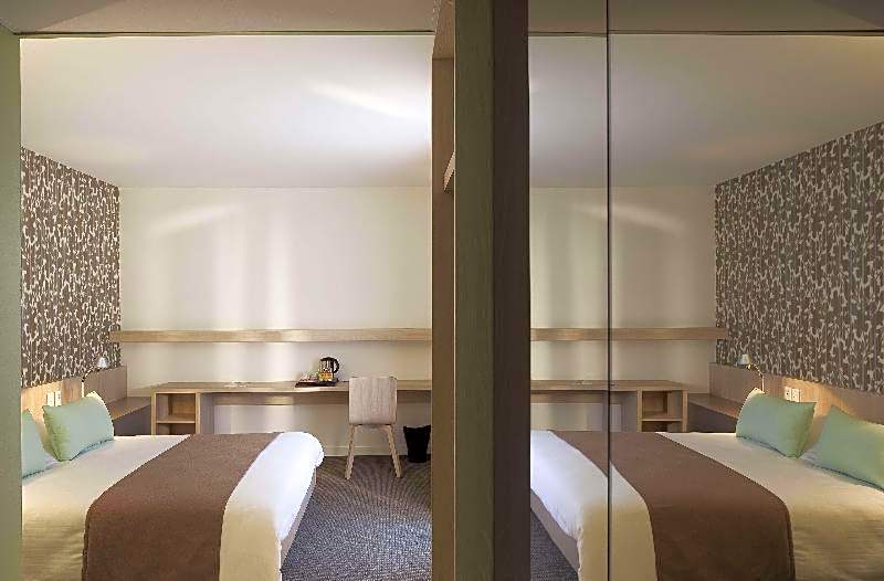 The Kyriad Gueret hotel offers a variety of rooms including Superior Double Rooms, Twin Rooms, Suites, Double Rooms, and Quadruple Rooms. These rooms range in size from 226 sqft to 344 sqft and can accommodate 2 adults and 1 child or 4 adults and 3 children. Smoking is not allowed in any of these rooms. The bed sizes vary, with options including a Queen size bed, Twin beds, and a Sofa bed.