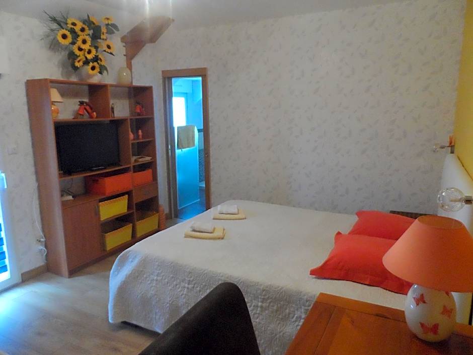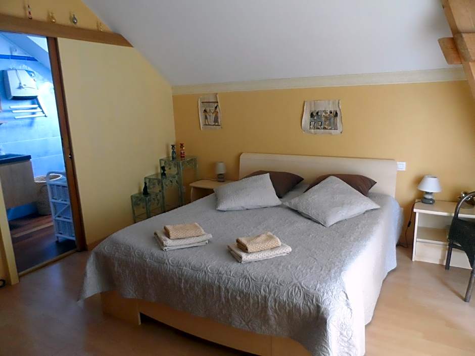 A charming chambre d’hote in a lovely countryside location. We were able to use a kitchen for preparing food that we bought from nearby supermarket, which saved us going out again in the evening to eat. The host (and his dear little dog) was very friendly- did not speak English so schoolgirl French was useful. Traditional French breakfast of crusty baguette, croissants and jam. All very pleasant.