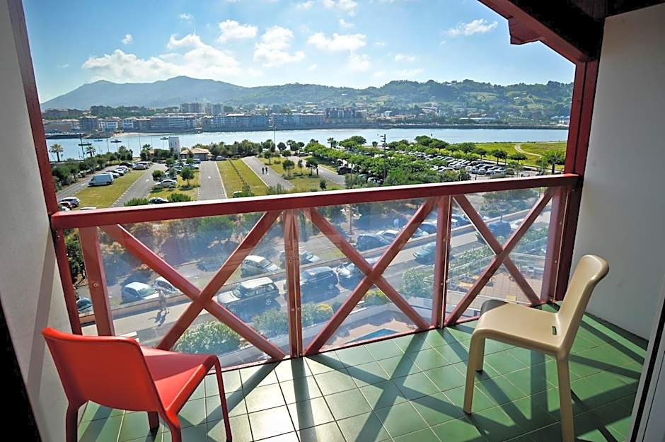 Excellent location with port views. A few restaurants/takeaway within 5 mins walk and a small grocery store. Walk about 20mins for more grocery stores, surf shops and restaurants/takeaway. Beach just 5mins walk. Once there you can park the car and leave it. You can walk to the centre of Hendaye along the promenade which also goes to Irun in Spain. Staff friendly and helpful at reception. Apartment comfortable and equipped with everything you need. Advise to book the hotel car park for a fee because the car parks are expensive.