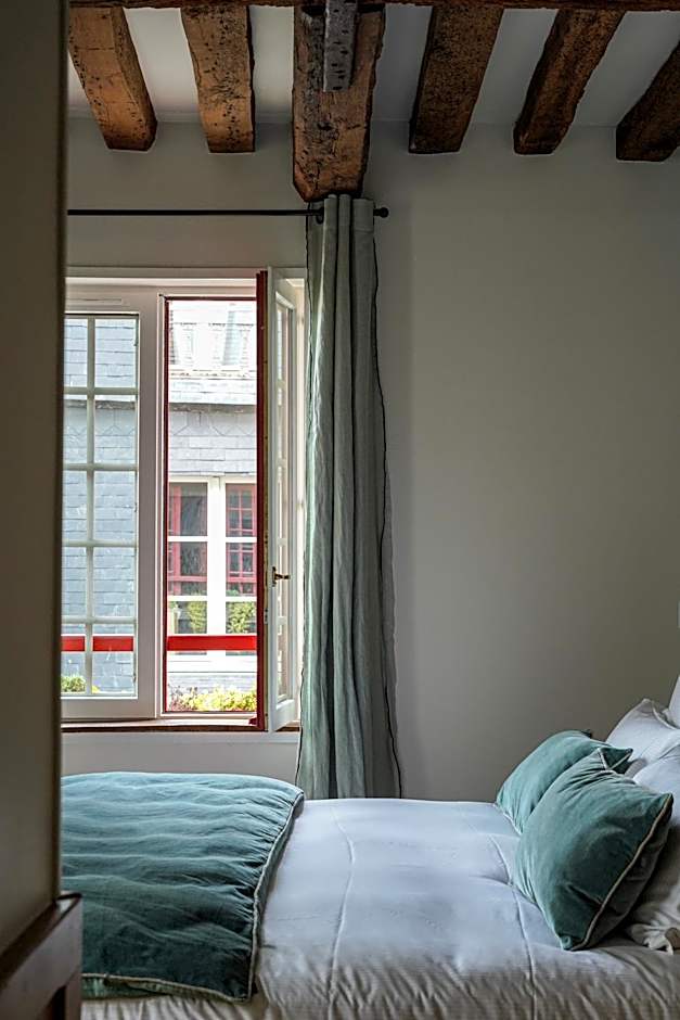 The hotel is in a wonderful location right in the heart of old Honfleur; it is set in a beautifully modernised and well-maintained historic building with old beams and charming features. The service, both whilst we were there and communications prior to our visit, was excellent with a friendly welcome, good recommendations for sight-seeing, and we were especially pleased to have the opportunity to book a place in their spacious, indoor secure parking garage, which was only a few blocks from the hotel (it would have been very stressful to try to find a parking space when we were in Honfleur as the town was packed and the town car parks were full). Our ground-floor room was spacious and had an excellent bathroom with a walk-in shower and a jacuzzi bath, with good quality toiletries. A nice touch was that the room was equipped with a Nespresso machine and capsules and tea bags, and also a jug of water.