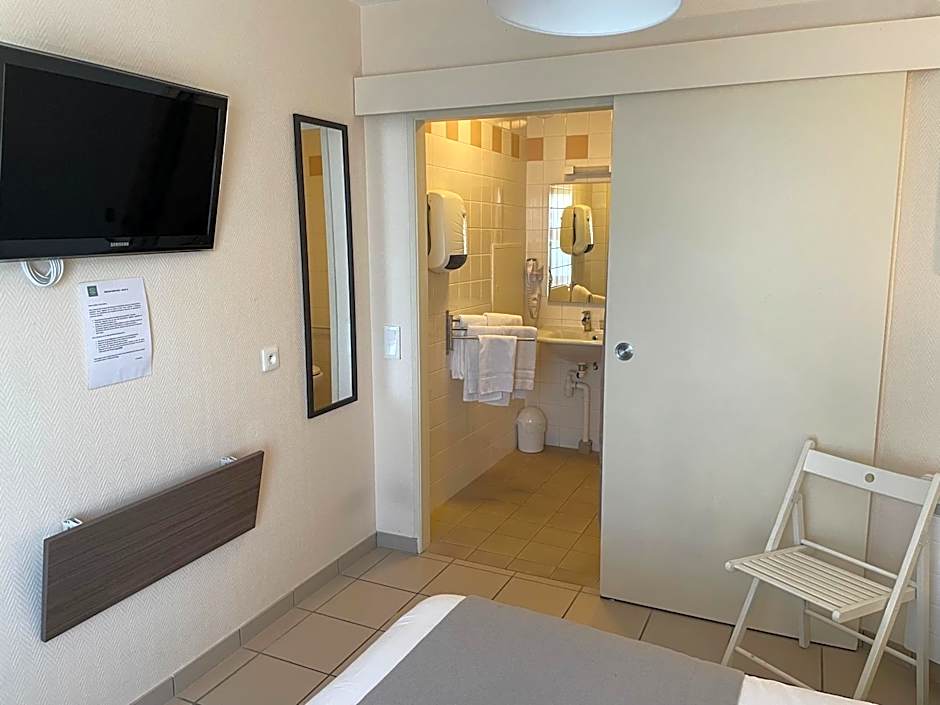 This room with attached bathroom is located on the ground floor making it suitable for people with reduced mobility.