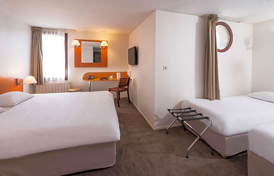 With a range of room types available, including options like Standard 2 Beds, Double Room, and Room with a Double Bed and 2 Single Beds, Kyriad Caen Sud can accommodate various group sizes and preferences. Whether you're traveling as a couple, with friends, or as a family, there's a comfortable and cozy room waiting for you. Enjoy a peaceful night's sleep in well-appointed rooms before waking up to a delicious complimentary breakfast to kick-start your day of exploring the enchanting Normandy region.