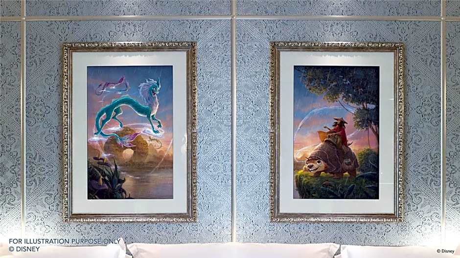 The hotel has two restaurants on site. The first is Royal Banquet, where guests can dine in the company of Mickey, Minnie, and their friends in royal costumes, offering an International cuisine. The second restaurant is La Table de Lumière, featuring a French cuisine and offering a mix of family-friendly, traditional, modern, and romantic ambiances.