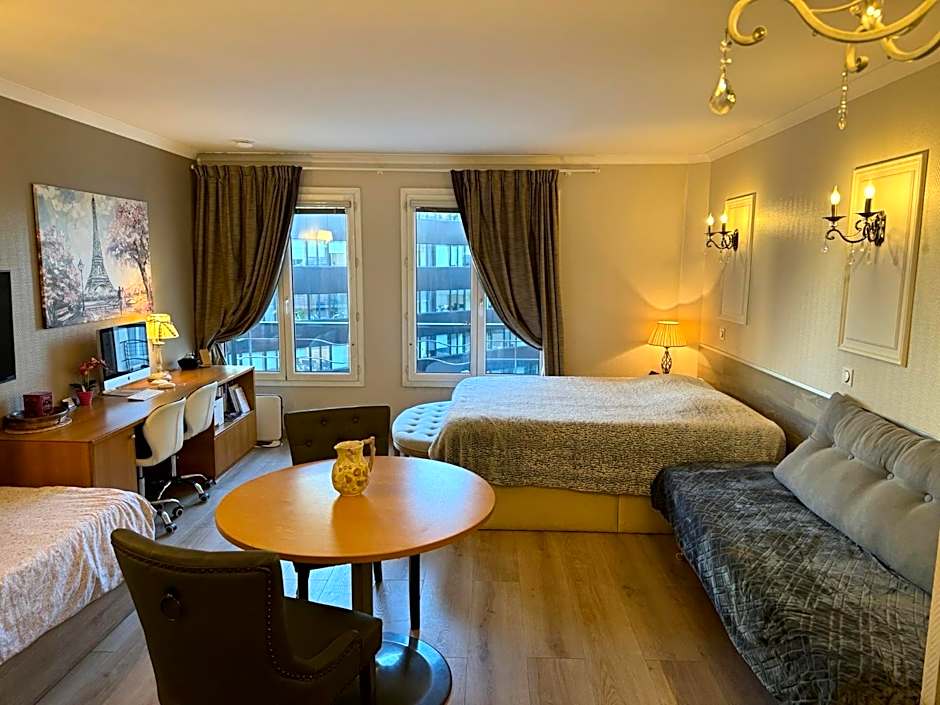 For families or groups, the 2 Bedroom Apartment offers about 355 sqft and accommodates 2 adults and 1 child, with 2 twin beds and a queen-size bed. Non-smoking interiors complement the proximity to the city center (about 0,8 mi) and the Paris Expo Porte de Versailles, with payment accepted only in cash.