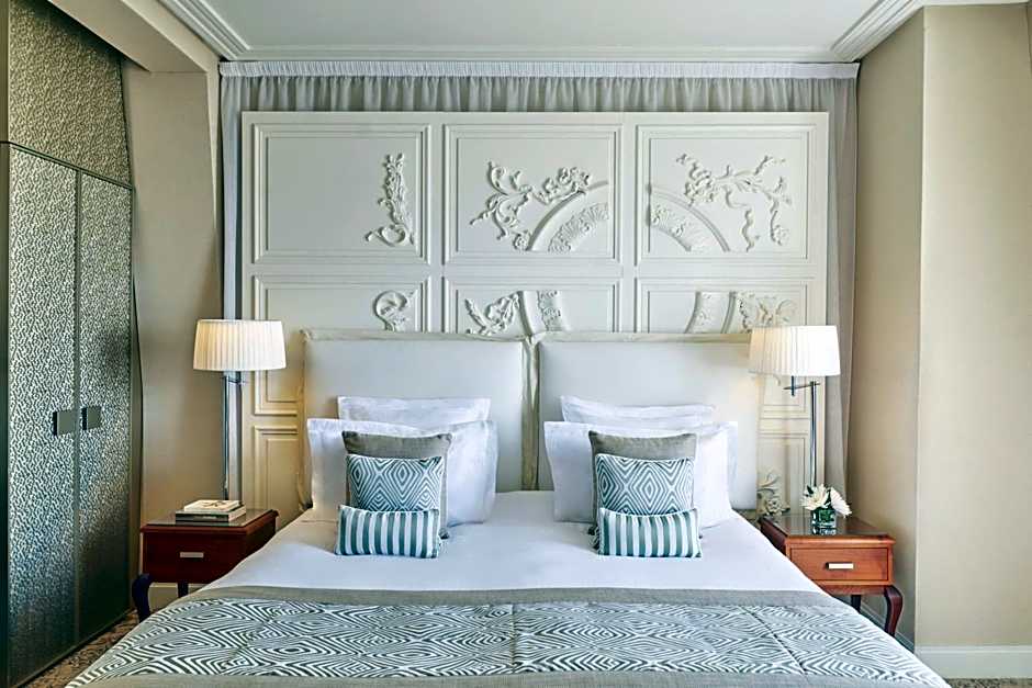 The Hôtel Barrière Le Royal La Baule offers a variety of room types, including Suites, TwinDoubles, and Doubles with sea views. The rooms range in size from 215 sqft to 807 sqft. Smoking is not allowed in any of the rooms. The occupancy for the rooms varies, accommodating either 2 adults or 2 adults and 2 children. The bed sizes range from Double to Queen to King, and some rooms also feature a Sofa Bed.