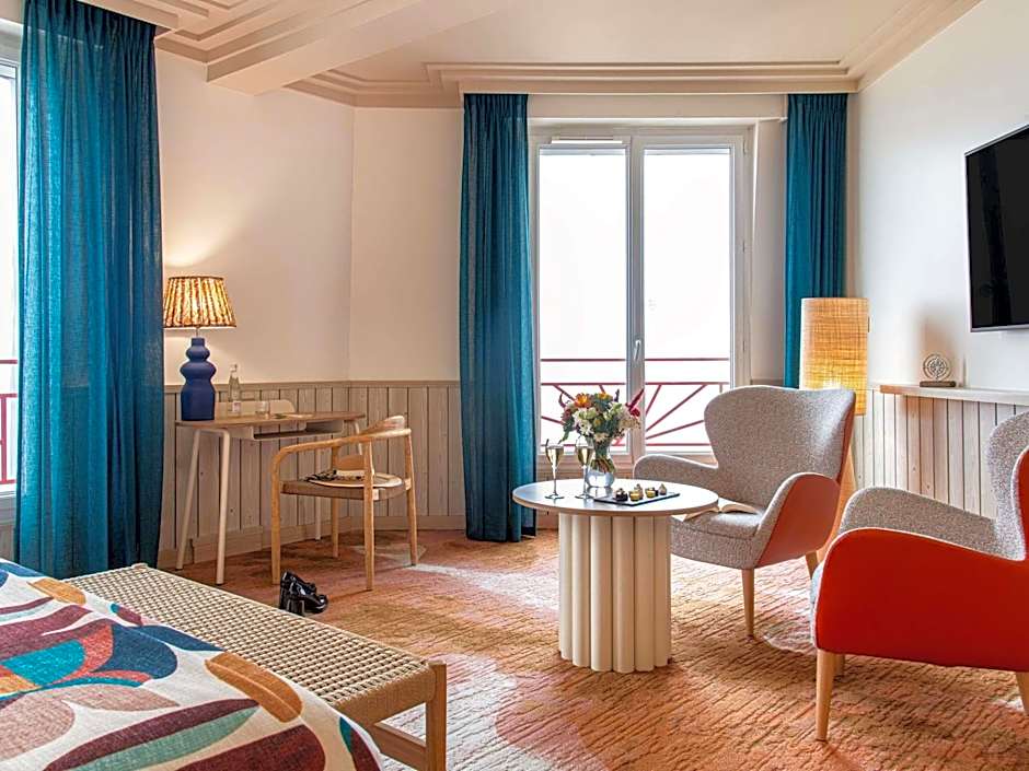 Junior Room Suite facing the sea: 115 ft² with view of the La Baule Bay. King-size bed or 2 single beds, sitting area, bathrobes, slippers, 55 in LED screen, Nespresso. mini bar and many other amenities.