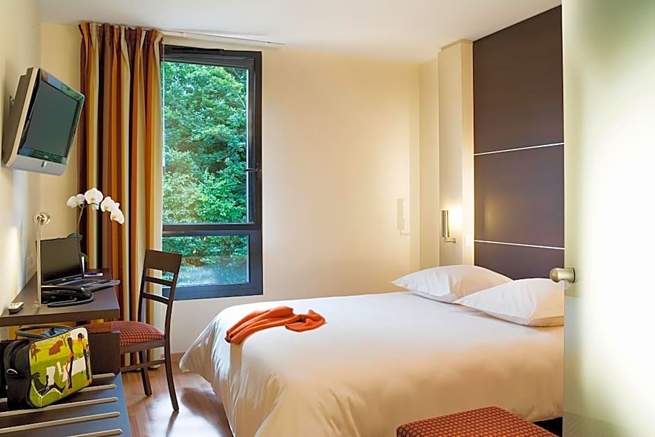This hotel in in a newly built area with a cinema, two grill restaurants, creperie, Burger King and a few other places - the whole complex surrounded with trees! This is a real little gem just outside of Rennes and perfect if you are driving to/from St Malo ferries …. only a 40 min drive there. A great place to stay with plenty of choices to eat. All the buildings are almost brand new and very clean. The hotel is set in quiet surroundings, has comfy beds, friendly staff and a decent breakfast - amazing for £68! Highly recommended