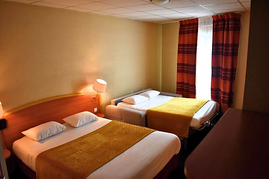 The Kyriad Hotel Lamballe offers a variety of room types to accommodate different needs. They have Double Rooms, which have a Queen size bed and can accommodate 2 adults and 1 child. Triple Rooms have a combination of 4 Twin beds and 1 Double bed, making them suitable for 3 adults and 1 child. Twin Rooms feature 2 Twin beds and can accommodate 2 adults. Smoking is not allowed in any of the rooms.
