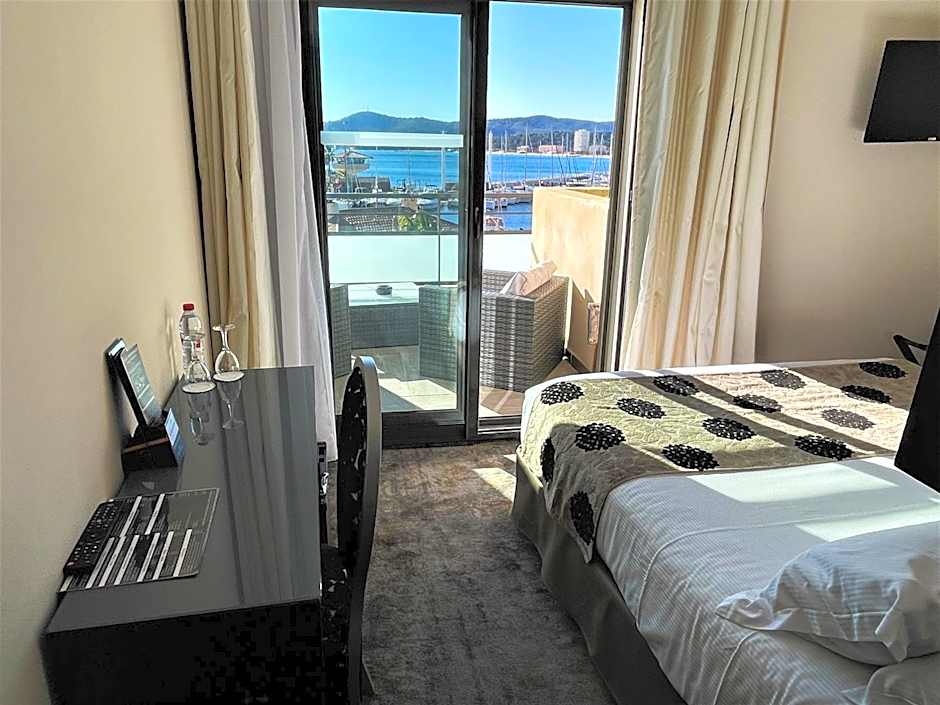 The location was amazing. The view over Le Lavandou from the balcony of our room was spectacular. If you look at the map, the hotel is across the street from the waterfront, but you don't even notice the street! We enjoyed it all times of the day. The hotel is within walking distance (1/4-1/3 mile) to two beaches, the main town one and our favorite at St. Clair, which was accessed by a concrete and stone path (not for the timid) or stairs and roads. Breakfast and parking was added for a modest price and both were worth it. The staff were fantastic, helpful, and incredibly polite. The room was snug but comfortable with a rain shower.