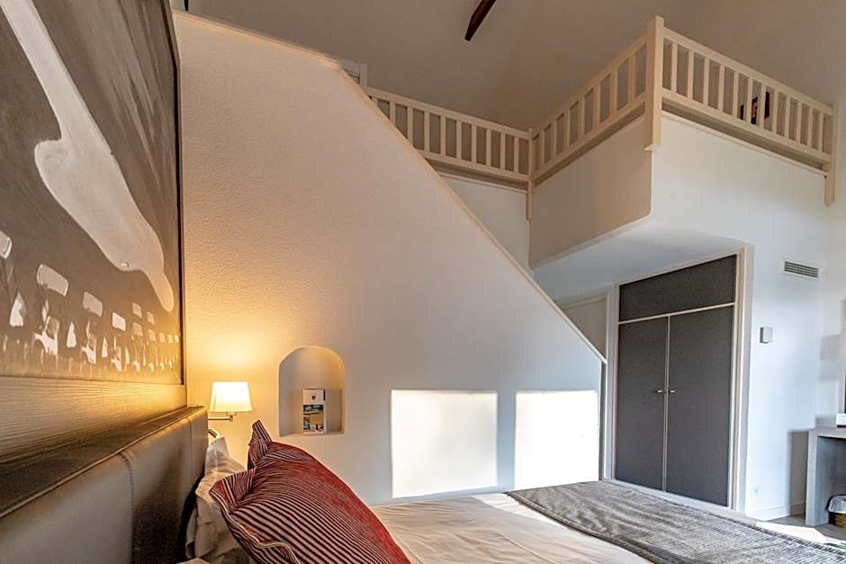 This quadruple room features a pool with a view and a mezzanine. This quadruple room is air-conditioned and features a wardrobe, a balcony, a carpeted floor, a TV with satellite channels and heating.