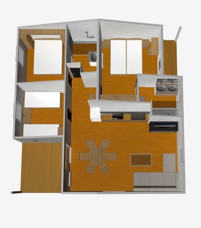 Featuring a private entrance, this air-conditioned chalet consists of 2 bedrooms and 1 bathroom with a shower. The well-fitted kitchen features a stovetop, a refrigerator, kitchenware and a microwave. Boasting a terrace with garden views, this chalet also provides soundproof walls and a flat-screen TV. The unit offers 4 beds.